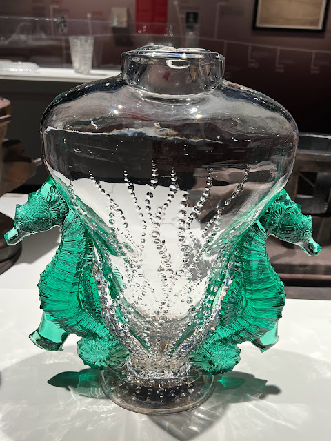 The same day in the same valley we visited the Lalique Museum in Wingen-sur-Moder, Alsace showcasing the amazing work of René Lalique. The jewelry he made was delicate and intricate. We saw his perfume bottles, drawings, and tableware items. He was known for his design of lamps, iconic car hood ornaments, and the glasswork which adorned ocean liners as well as the coaches of the Orient Express. It was a treat. The museum is where the Alsace Glassworks was originally built by Rene Lalique shortly after WWI. Today the factory has been enlarged and has around 250 people continuing the Lalique tradition.