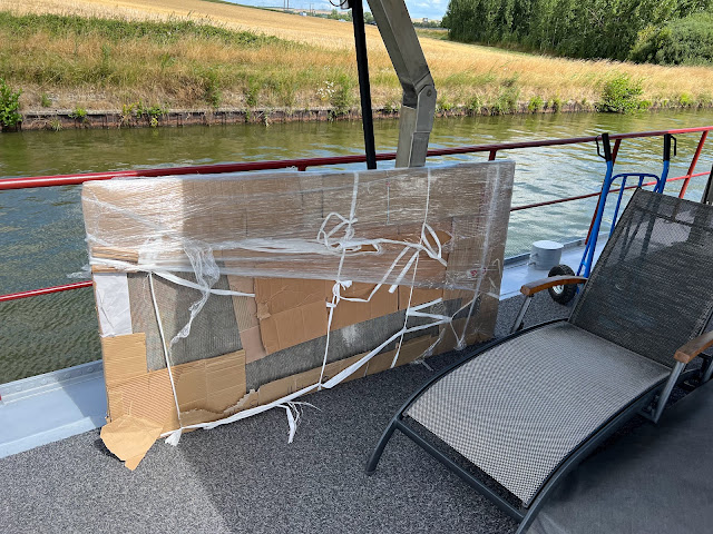 While in Wittring I sat outside with the local community and watched a delightful old fashioned silent black and white movie complete with three people providing all the sound effects. The story was about a man (seen on the screen) who finds a wine bottle floating in the canal with a note in it. As he searches for the person who wrote the note he has adventure after adventure meeting all types of people. It was entertaining, with perfect sound effects. It was in truth a modern day film done in an old style. It reminded me (a little bit) about our cruising through the South Pacific when we used to put notes in wine bottles and toss them into the ocean, hoping someone would find them.